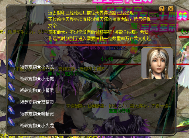 提示:携带宠物打怪可以触发BUG入包翻倍、打boos必爆、炼化宝宝100%成功等等福利