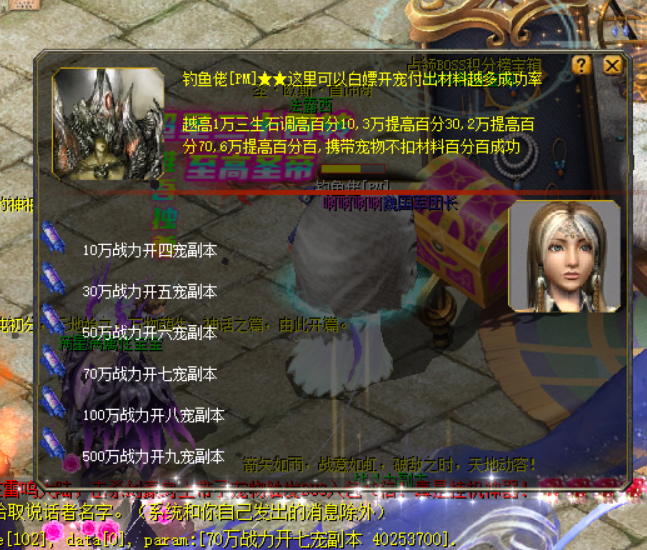 战力开宠副本:用1万三生石成功率是10%,2万20%...6万100%,携带宠物100%成功